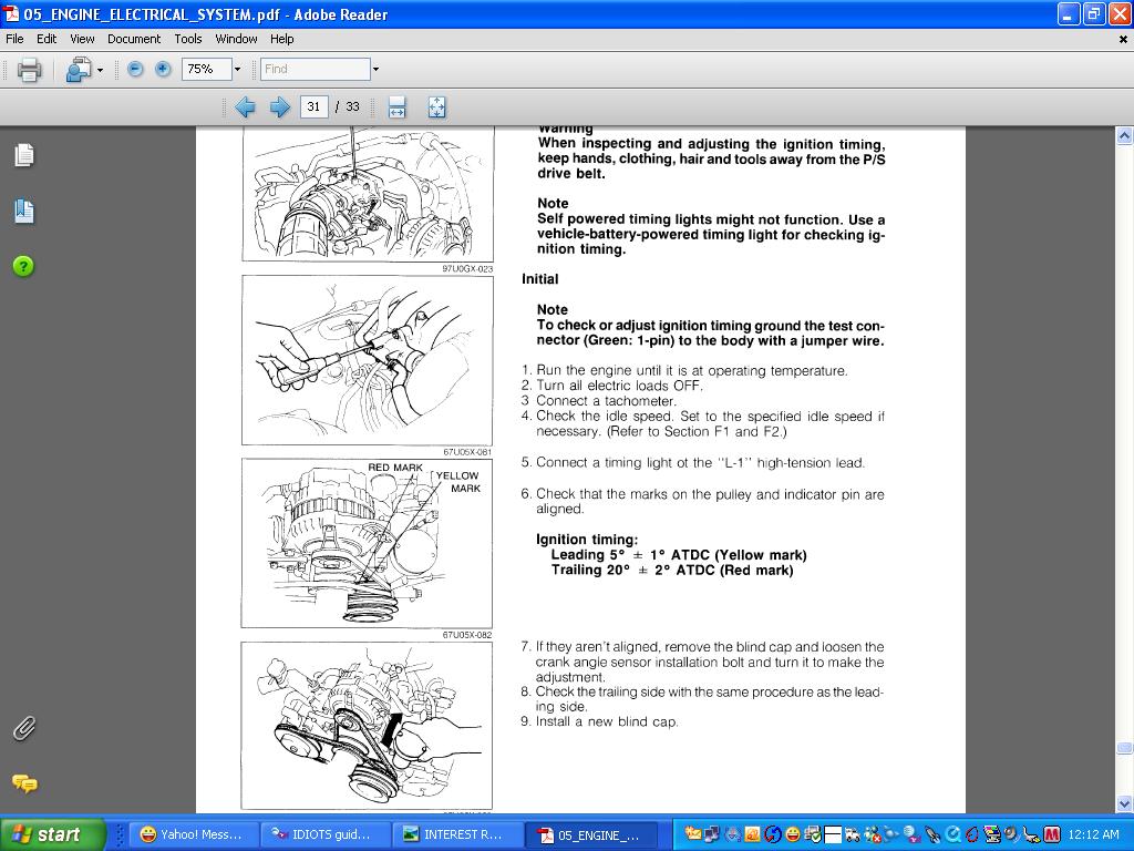 If the engine is already running, then just get a timing light out and use it instead of the above. See the last jpg I attached OR just read the FSM section on timing.