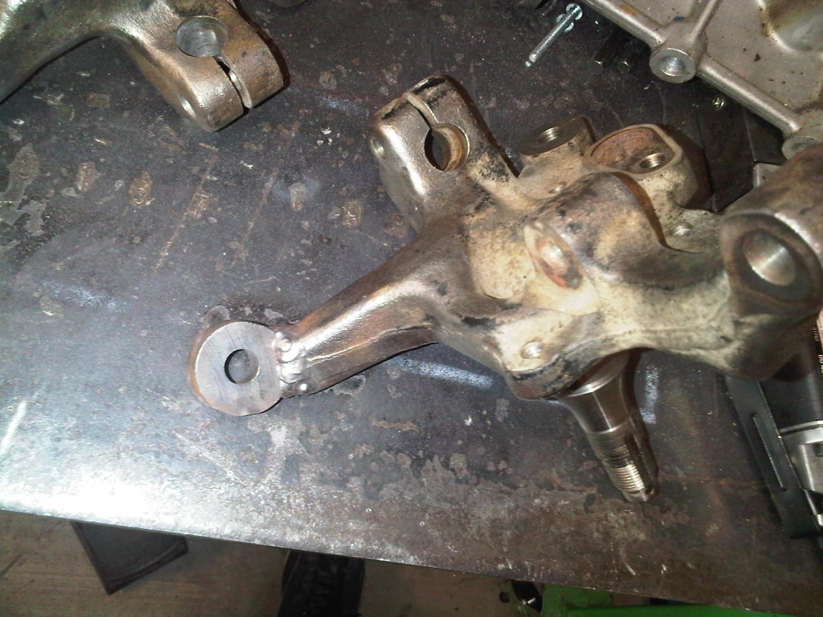 im commited to my steering angle mod now..just cut 1 of the spindles! everything lines up on the jig perfectly ill tack weld and make sure it clears the rotor, take it apart and weld it up!! neat ****!