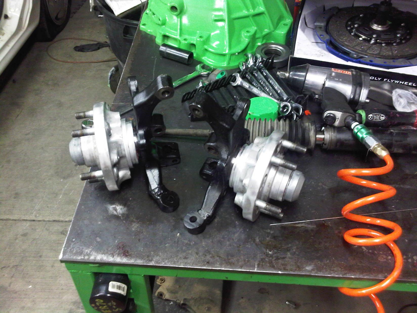 wheel bearings done, everything cleaned, powdercoated and spindles modded