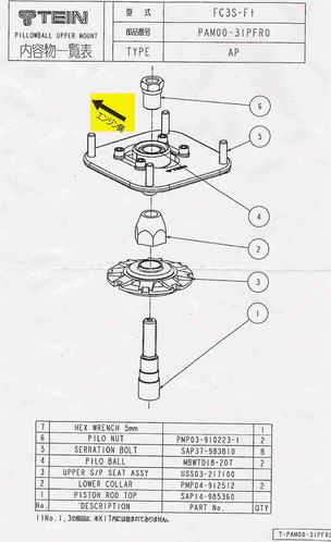Actually after looking at it a little more, it appears that the turbo2 I have came stock with the KYB/MacPherson strut upgrade, which were cut out and koni cartridges were inserted. So this problem is with the KONI piston rod that mounts at the strut top/pillowball.