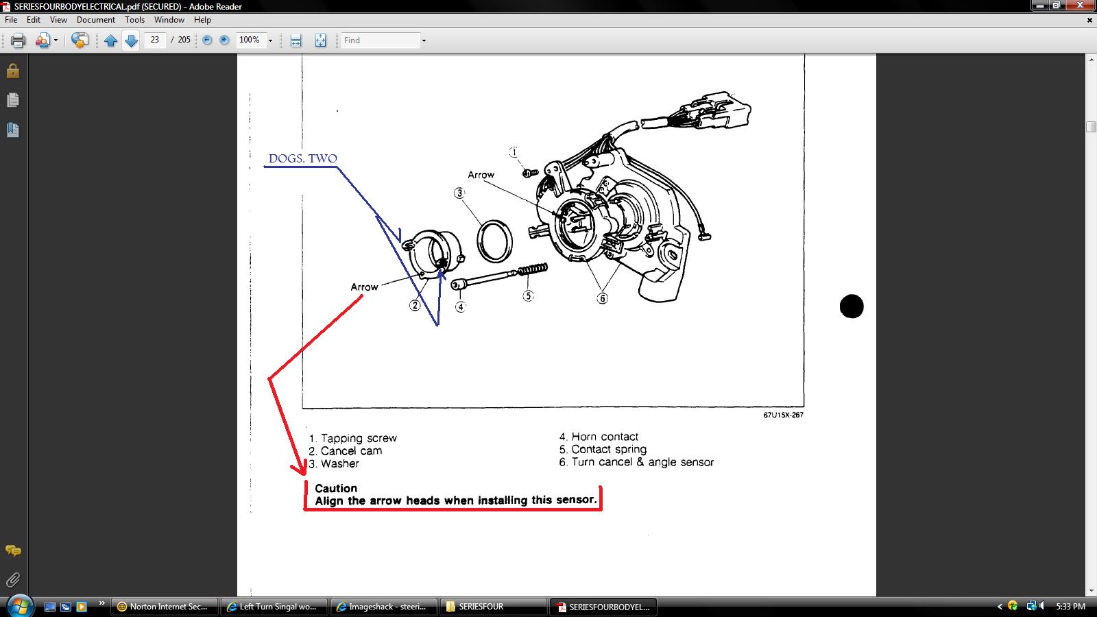 The BODY ELECTRICAL deals with the turn signals cancelation. Give it a read sometime. It's in the FSM BODY ELECTRICAL.