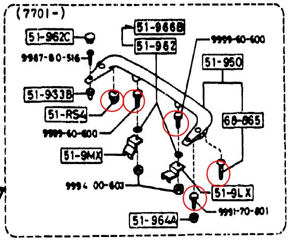 And while I'm at it, whats the diff between parts pictured in a rectangle (i.e. 51-964A) vs. those not in a rectangle (i.e. 999-60-600)? Seems the ones not shown in a rectangle don't appear in the parts list on the right either.
