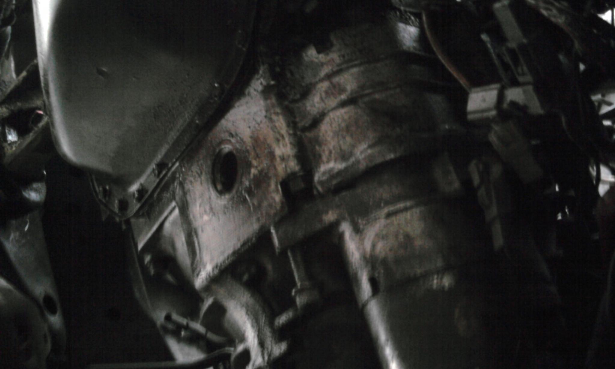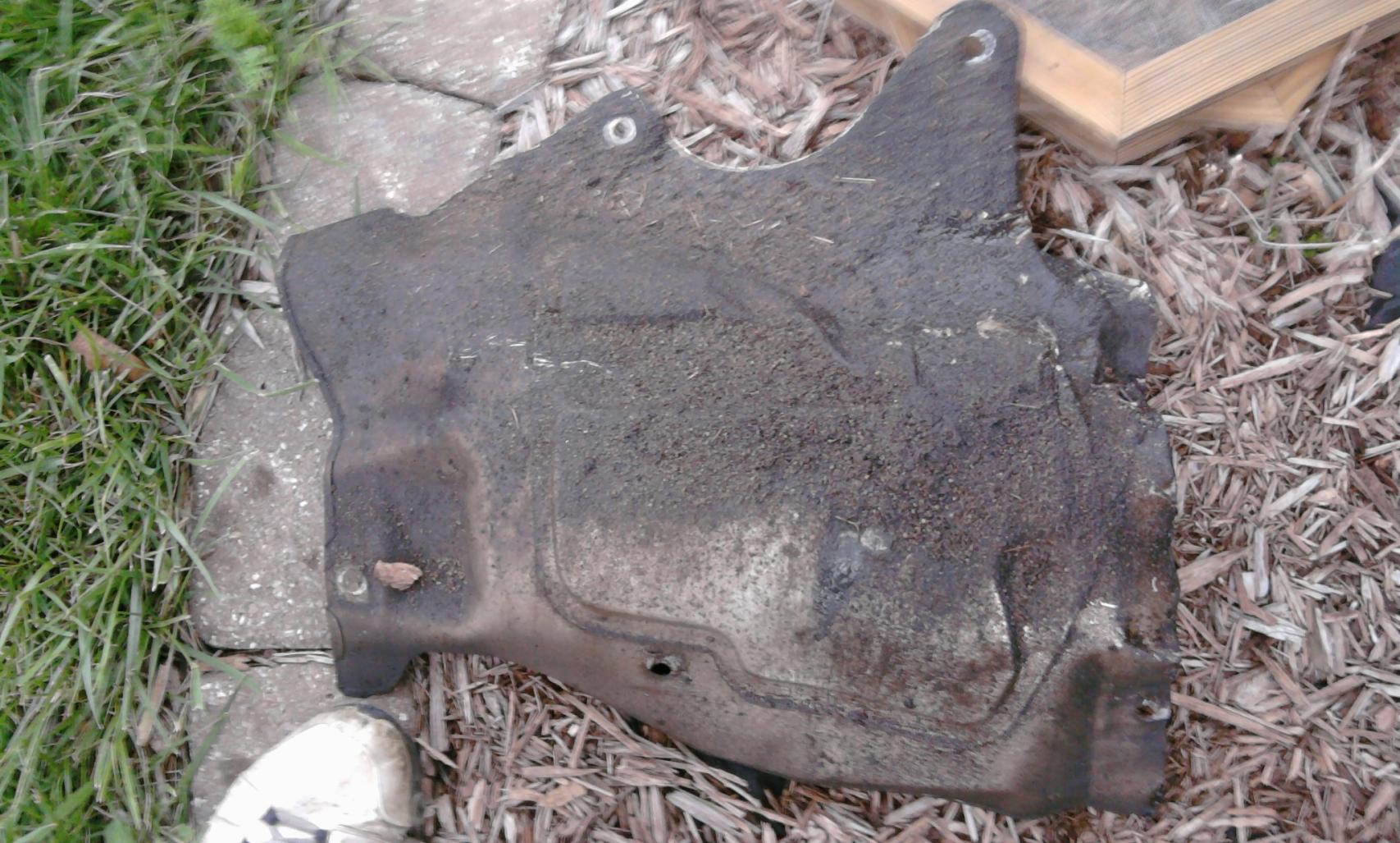 and then i pulled the driveshaft. and i learned that the previous owner didn't put in all the bolts [only 3 were on the driveshaft!!] and the Heatguard was torn to hell and back