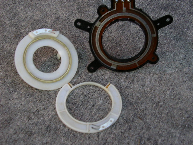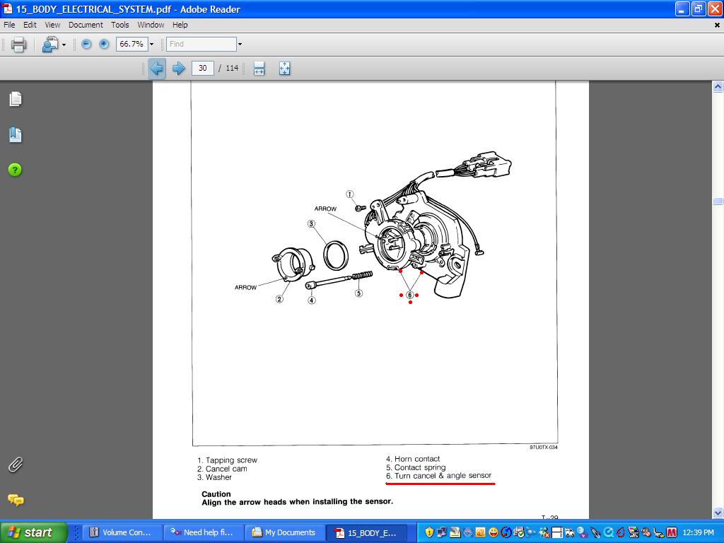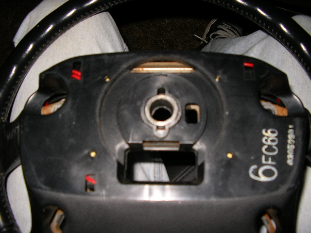 Here are a few more pics of the clock spring and other bits. I thought I found what functioned as the sensor as the 4th wire that runs to the outside of the clock spring afte4r what you said but it is indeed just a ground on both sides. The other 3 wires are one red for the horn and 2 wires that go to the air bag. The turn cancel has three wires that go to it. The turn cancel only opens and closes circuits so it could indicate if the wheel has been turned alot but it won't offer any sort of fine data so I doubt it acts as the angle sensor but I could be wrong if someone knows better. I really would like to resolve this problem so I can put my drivers console back together. I do not think disabling the beeper is an acceptable fix. Most people seem to have this problem when they remove the wheel. Like I said earlier, my problem was only first noticed by me when it was driven in the rain which could be a good indicator that the sensor or some wires may be somewhere that it could get wet. Any help is greatly appreciated.