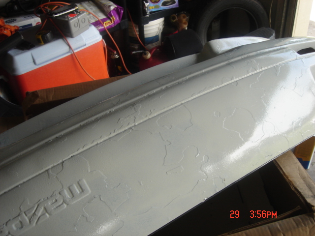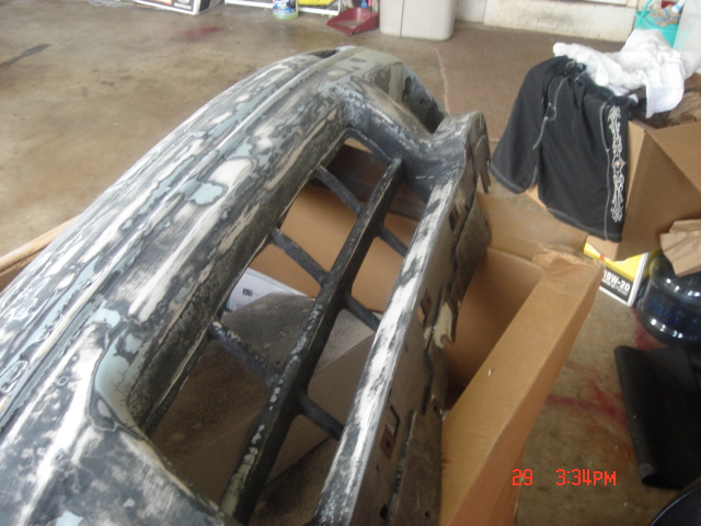here are some pics that i took. i sanded first with the 60 grit then i primered it...it dried and now i just sanded dow with 80 grit and i must say it's turning out alot better than i expected. i'm gonna give it one more coat of primer, sand it with 120, and then start painting it with the blue i got.