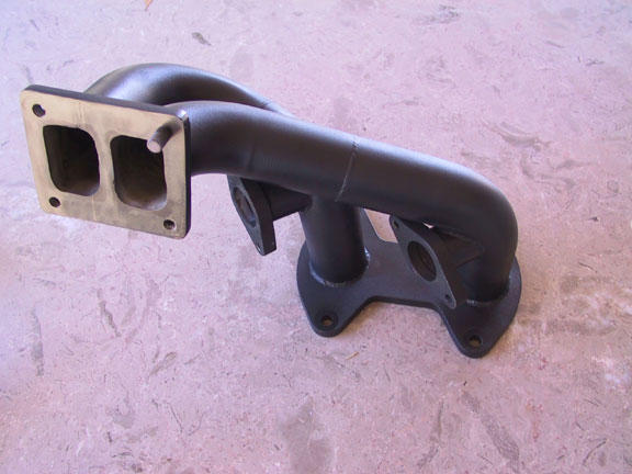 I like my manifolds with long-radius gradual bends that meet at shallow angles. I always see people using short radius els and that must really hurt flow compared to standard radius. The two wastegate runners actually meet at a better angle then it looks in the picture. The passage between them is several inches long and as wide as the diameter of the pipe so flow won't be an issue. Still need to do the wastgate dump into the downpipe, so there's more plumbing to do...