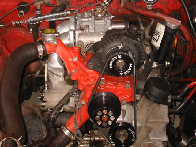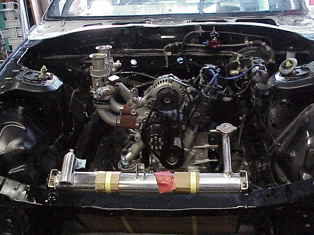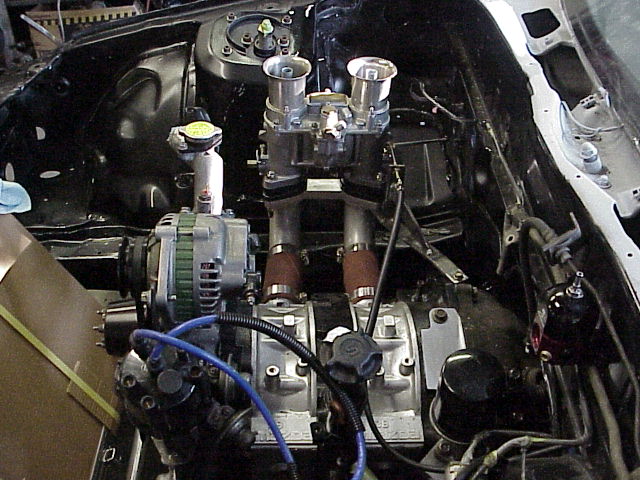 I love how much a carb frees up the engine bay!! It makes it look so simple yet very cool. If i get a weber im gonna keep the big stacks and just put some screening over them to help filter crap out.