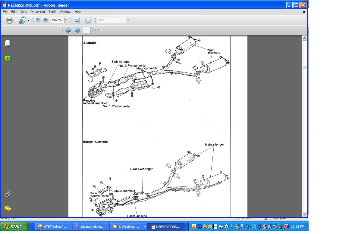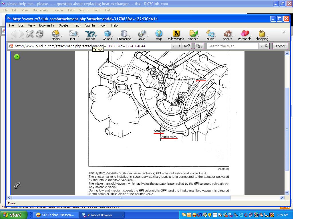 Tell you what. I need to read that manual and find out if that is indeed a heat exchanger or catalytic converter on YOUR car. Most of us are not familiar with your set up. I'd be curious if you have the vacuum operated 6PI actuators or not. Look at the jpgs above and see if your car is like that i.e. with the shutter valve type actuators.