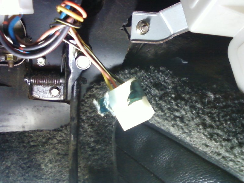 Ok. I think you got some wires wrong. Instead of two black/white wires in the four hole plug near the pedals, it's really two Black/Yellow wires, and orange/white wire and a Yeller wire. That is not used on stick cars. It's automatic related for Kick Down Swtich for the accelerator. Forget about it all together.