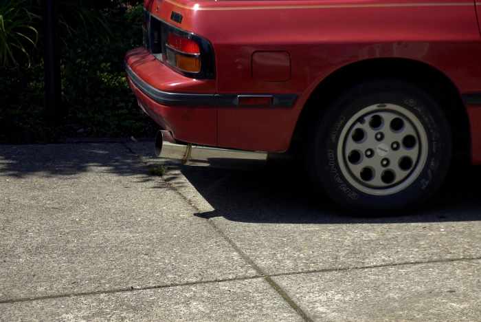 yea 7th heaven, imagine that 93 cutlass, and add about 2 times the loudness, thats what it would sound like with just a header on the rotary, their extremely loud, but it does sound nice and mean with just a header, nice deep tone in the lower rpm's, just really loud