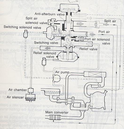 Also, when cruising in fifth gear, the Split Air Solenoid opens and the amount of air going to the catalytic converter rises dramatically.......bypassing the airpump air around the 02 sensor.