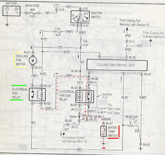 Just look at the 1987 FSM schematic of the fan circuit on page Bc of the schematics.