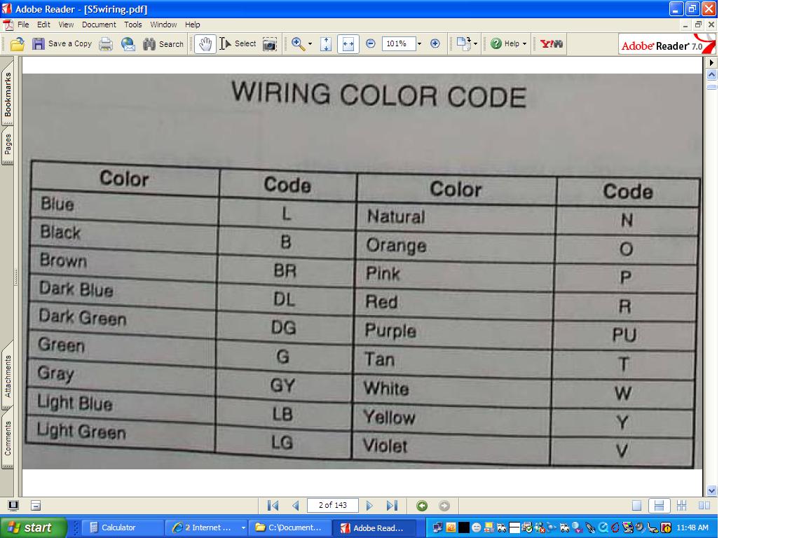 The colors of the wires in the three plugs is shown in the attached jpgs. The letter L stands for Blue fyi.