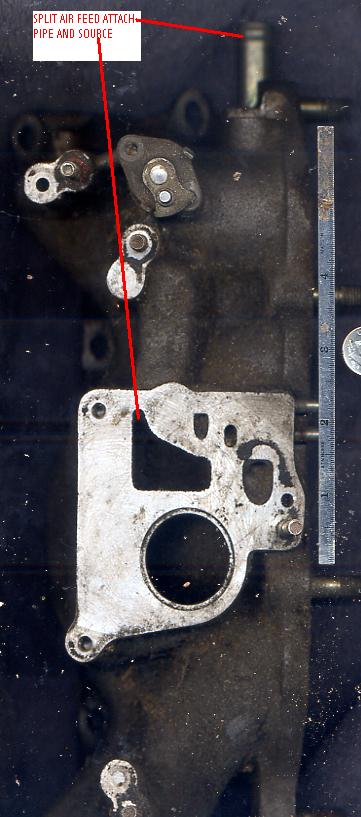 And here's a couple of scanned pictures of the unit. The pipe is like Scathcat said the feed for the split air pipe and the odd shaped hole in the acv attach area is where the Split Air comes from. The round hole next to it is where the Port Air goes to the exaust ports from the acv.