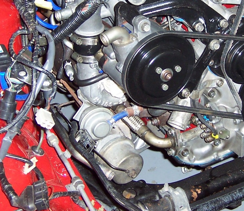 My cheapest mod was probably my Manual Boost Control (underneath air pump pulley in picture) which I don't recommend, and have long since removed. I would use a basketball as an air source to adjust it to around 9 or 10 psi.