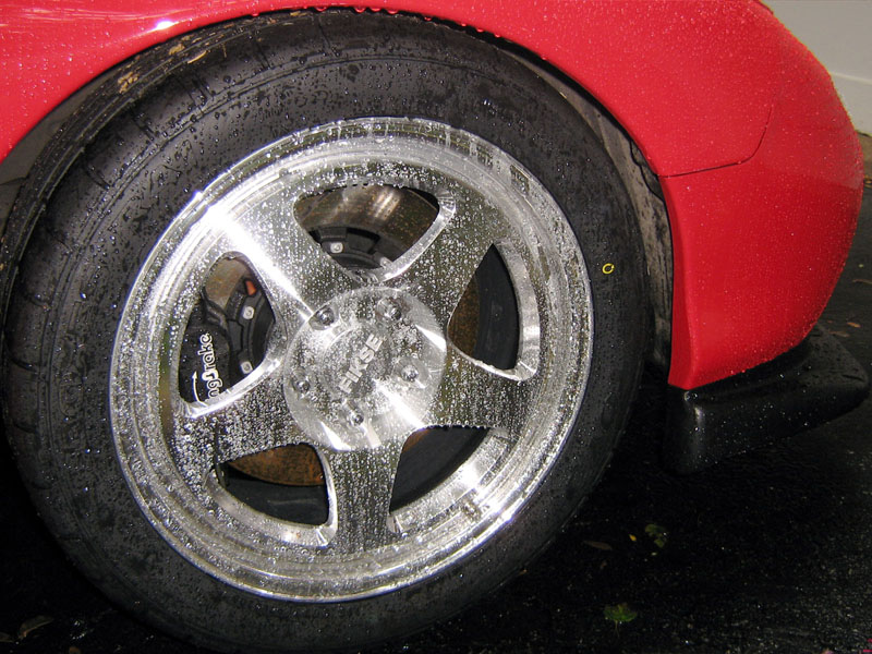Pics of my new Profil 5s wrapped in Toyo RA1s (17x9,10 with 255/40 and 275/40). It pretty wet and rainy and the car was dirty from making the trip back from Monsen's place, so cut me some slack