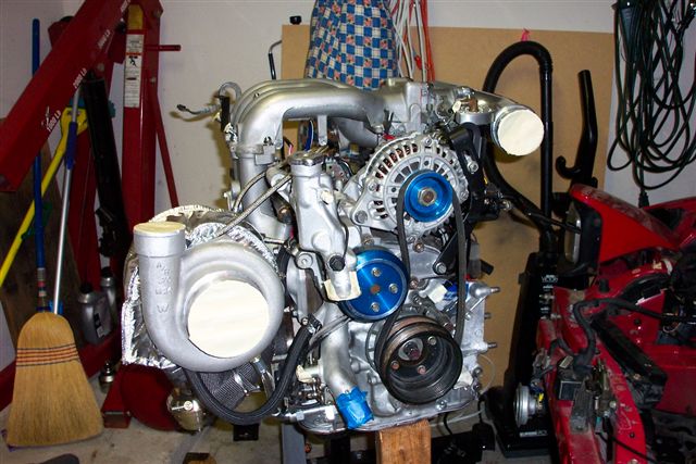 Few parts I had a local rx7 owner do for me. All the piping is greddy and the purple greddy t78 I did myself with rattle crap. All black parts are powder coated. Should have the engine in the car in a few days.