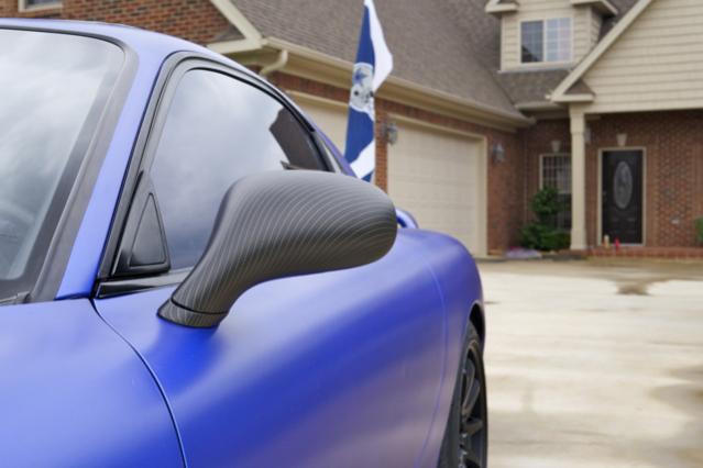 What was added was a carbon fiber wrapped hood. Carbon Fiber dipped (not RDS) mirrors and side air vents. Installed new ROTO wheels and tires and a way we go.....I thought it turned out perfect. If your not a fan of carbon fiber too bad......