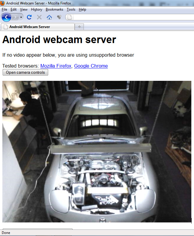 It's an extra Android cellphone I have, plugged into power and mounted on the wall above my car, running a webcam app. I can view it from any computer or even from my cell phone.