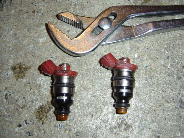OKAY! Maybe some more progress...I removed the secondary injectors just now....I pulled the out of the rail (oddly enough, the one closest to the alternator in the rail smelled like gas MUCH more than the one closest to the firewall) Anyways, I pulled them out...and examined the one that was more moist and smelled more like fuel. There are the 4 horizontal very small screens going around the circumference of the injector, midway. One of those screens is sliced horizontally from end to end as if someone had taken a knife to a screen door! Now, I know this is NOT the way it is supposed to be
