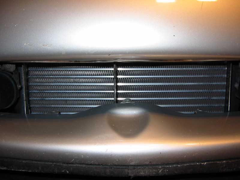 Second, the core seems too big. Only about 70% of the core is visible with the stock bumper. The remaining 30% extends up above the stock bumper intake opening several inches. Since this section isn't getting any airflow I tend to think it's creating more lag without a benefit.