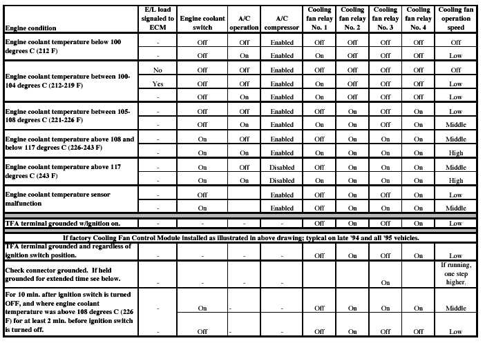 Attached is a schematic of the coolant fan system AFTER the recall is performed, and a table of system responses to various input conditions.
