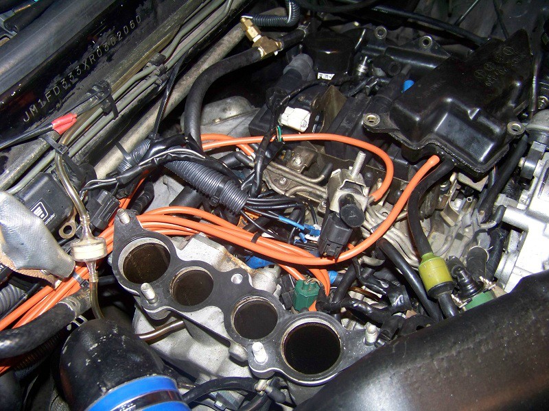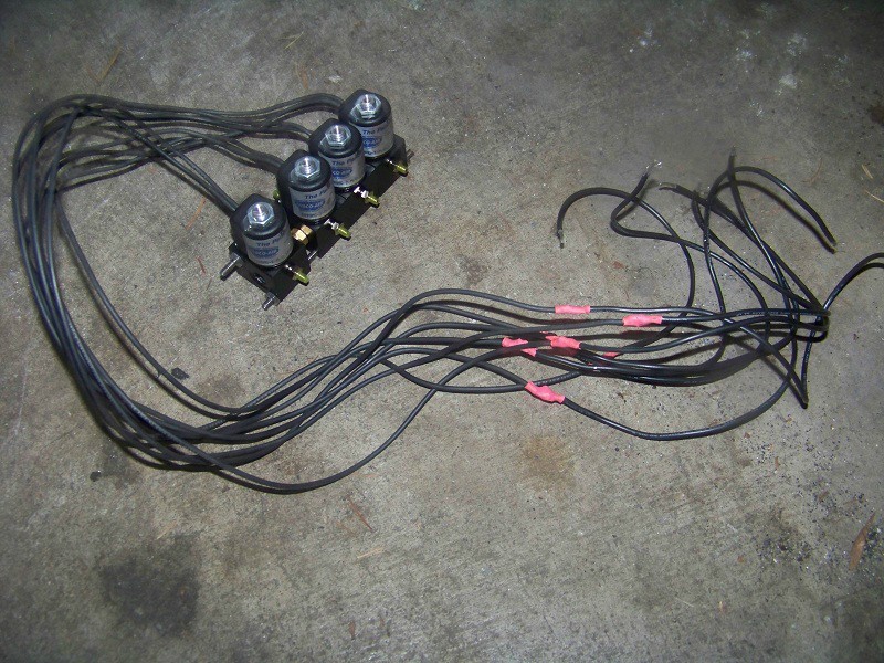 Ok cool you have a sweet looking solenoid rack that does nothing. Now, if you haven't done so already, disconnect and toss the old stock solenoids. say good riddance, burn them, stomp on them, stab them with a knife..whatever you please. Now don't forget which electrical connector goes to which solenoid because now you need to plug in the wiring. just take the two wires for each solenoid and attach them to the appropriate connector. it's just a 12V switched power so it doesn't matter + or - just plug them in. Mine were very secure, if yours is not a little electrical tape might be required. Sorry I don't have any great pictures of this but this is basically what you are looking for. and yes the orange hoses are as ugly as they look. I need to go get some black hose.
