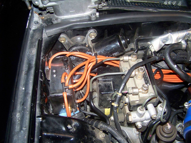Ok you ready for this? alright. Take your intake manifold off and toss it to the side. see those electrical connectors next to the ABS module? unclip them from the chassis and push them down out of the way, since this is where the solenoid rack is going. Now set the rack down and start feeding the wire loom along the firewall. Zip tie it in place and you should be left with what looks like just another piece of wiring harness along the firewall.
