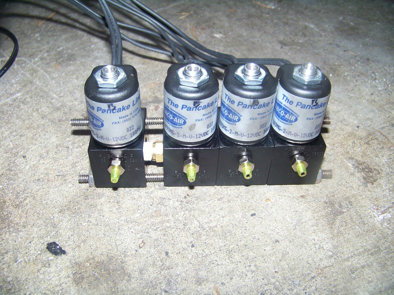 Ok so you've got your solenoids right? good down first thing you're gonna want to do is label the ports. just like the factory solenoids there is an A, B, and C. When it doesn't have 12 volts applied air flows between B and C. When it does have 12 volts applied air flows between A and B. so make sure you have these labeled. once these are labeled then you are ready to get this project going. Basically there is a front top and back port. your front port is B, top port is C, and back port is A. I have those sleeves over the barbs because I ordered too small of barbs on accident and didn't have time to get more so I just made do.