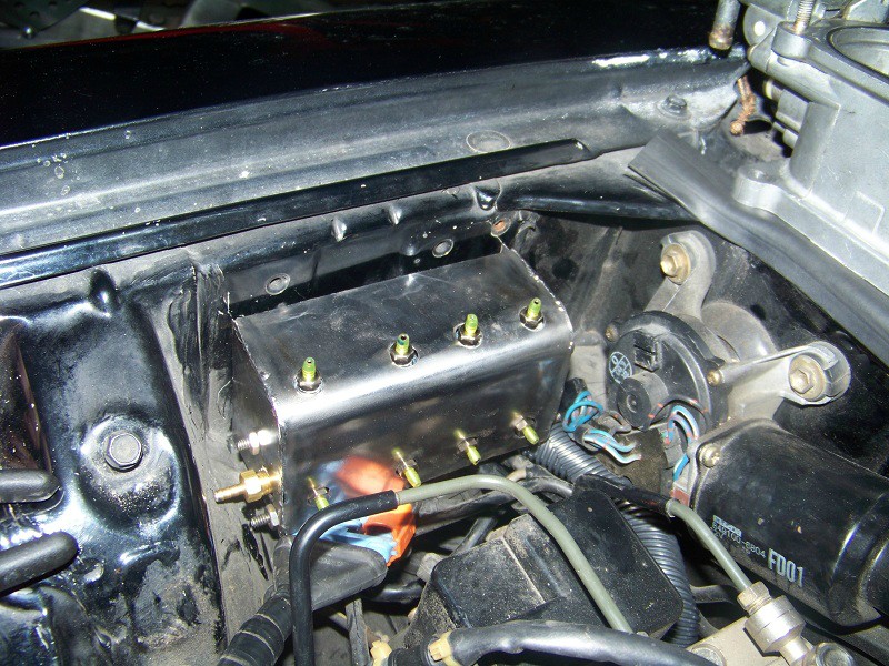 Ok this is kind of optional. I did it for my project because of the requirements I set beforehand. After taking temp readings I found it's not really necessary but it does make it look a lot cleaner. Mine is now painted black, and with a black heat shield and hoses this would look very clean and probably not even be noticeable to most people. My heat shield also doubled as a mounting bracket so if you don't make something like this you'll have to find a different way to mount the solenoids. I'm just gonna put up some pics of how i made it.