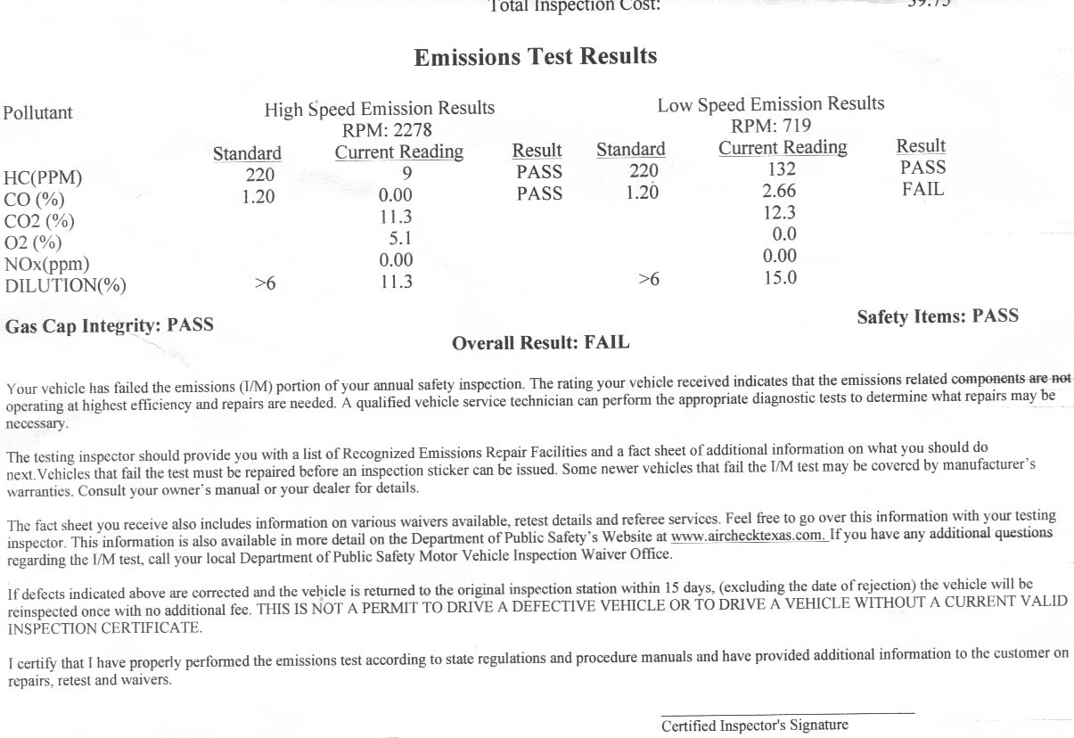 Hello, like the title says the car did not pass .Its a 93 stock except for down pipe, had the car for a year put about 3k miles on it. Everything pass except for CO% at idle, just need some opinions on what the problem is.I have to add that the car was not driven for about three months fixing oil pan leak and motor mounts.Thanks for any input.