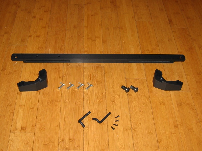 You may notice that the two main mounting brackets are slightly darker in appearance than the central bar. I had the mounting brackets tumbled in an effort to help remove machining marks. This aids in the finishing process (both for anodizing, and for those who want to do their own finishing). Oddly, it actually gives the parts an almost "cast" look to them. I really like it. Instead of tumbling the bar, I had it sandblasted to assist with removing machining marks.