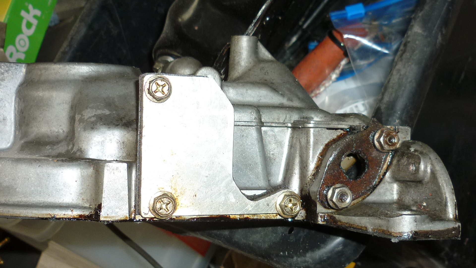 Tools here are limited to a 1/4 inch drive ratchet, a medium extension and a 10mm deep socket. The OMP is secured by 3 bolts, Two on the aft side above and below and one toward the front of the car just above the oil lines. The oil lines must be disconnected to access that bolt. You are absolutely working blind on the car, and have to feel your way around. I found a 4 inch extension with the deep socket and ratchet was about the right length to get onto each bolt....