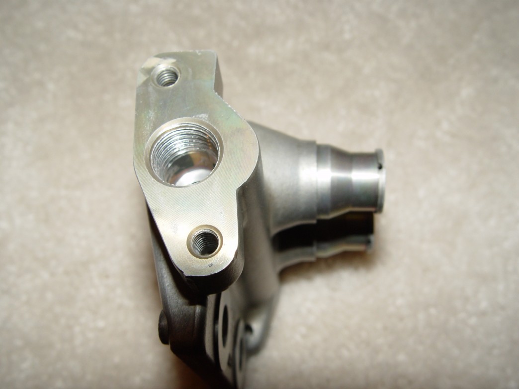 The inlet side recieved 1/4 NPT tap for the 1/4 NPT to 6-AN elbow adaptor.