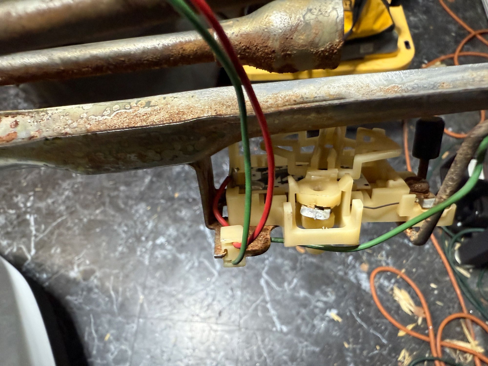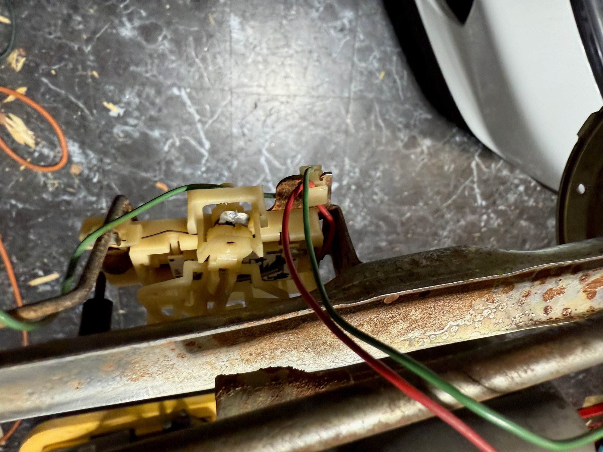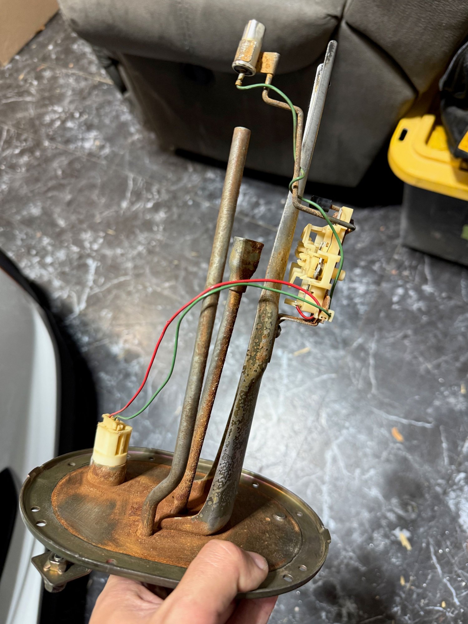 I took the hangar out of the car due to the stock connector melting up inside the tank - I'm planning on replacing the stock wiring and drilled a hole in the hangar. Everything was going great until I was about done w/ the 5/8 bit and the hangar assembly swung around a couple times smacking the table.