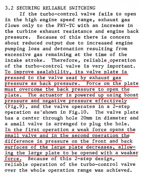 but Im still confused about the turbo control actuator. maybe im having a giant brain fart, but my turbo control actuator is definitely normally in the pushed-outward, toward rear of car position (exhaust port open). Ive crawled under the car and applied vacuum via a hand pump to the top port of this actuator, and the rod will pull toward the front of the car, which appears like it closes the port, according to Fig 9 above and ive also verified this on a spare set of twins.