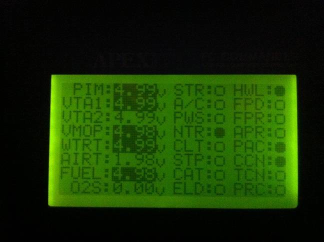 anything on the left side highlighted with 4.99 volts means not connected. dont assume since the plug to the sensor is good, that its sending a signal to the ecu and the ecu is recieving it. also everything on the left, besides fuel/o2 are sensors needed to start the car.