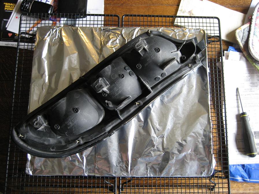 Since its another miserable and wet day here in Oregon, what better to do then start tearing apart my spare tail lights. I have search and read many a thread suggesting using various methods for dissecting our tail lamps. Everything from a heat gun, hot water bath, to using the oven. I tried the heat gun and it just does not provide a even enough heat to easily remove the shell. The hot water bath is great, if you have a hot water heater that can put out near boiling water. Plus who would want to stick their hands in a near boiling tub. Here is my oven based attempt.