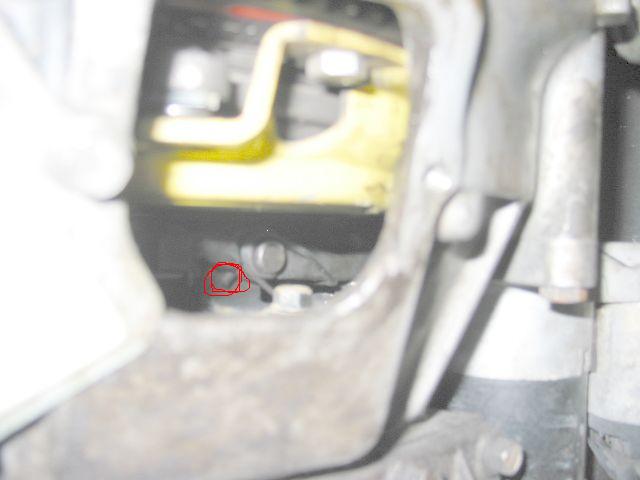 The area circled below is what you want to inspect. Look VERY closely around the pin and you should see a crack in the fork. Somebody operating the clutch while you do so will make the crack more easily visible if there is one present.