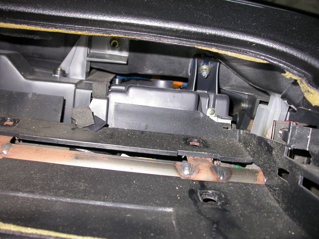 Step 2. Now it gets much easier. Next remove the glove box by removing the two philips screws and unlatching the plastic support latch. This should expose the evaporator.
