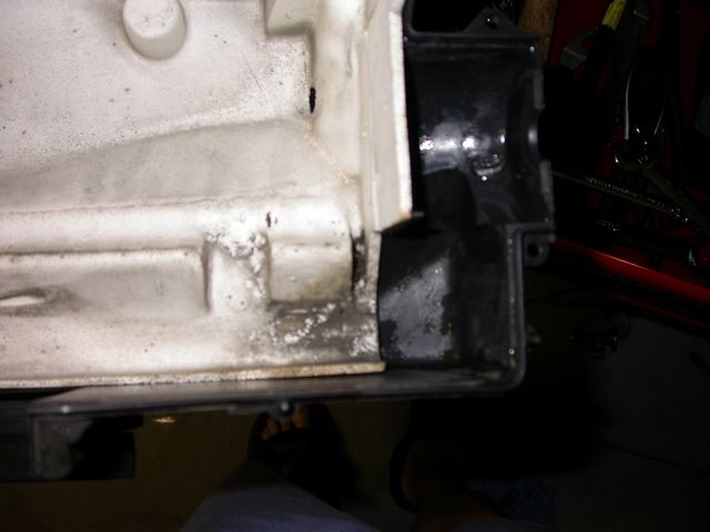 Step 3. Unbolt the 10mm bolt that is holding the lower portion of the evaporator. Also, undo the condensed water drain tube located right next to it.