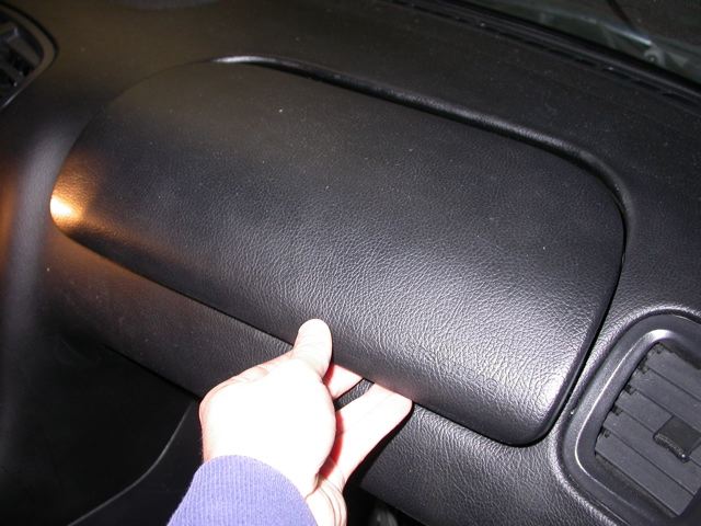 Step 4. *94-95 specific* you need to remove the airbag. MAKE SURE THAT YOUR BATTERY IS UNPLUGGED!!! Looking underneath the exposed dash remove the four 12 mm bolts.