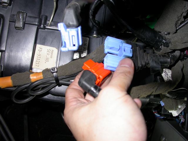 Step 5. Unplug the airbag harness. This is one of those "keyed" type of plugs. You need to pull back the cover of the orange plug first. This lets you "push down" on the release lever. Remove the orange plug. Then the blue one (this is the airbag plug).