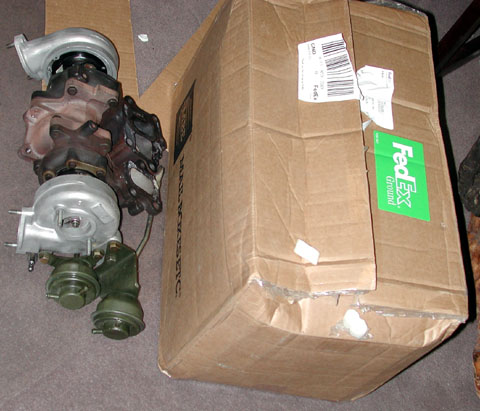 I can give you all firsthand knowledge about the shipping companies; I worked for UPS for about 3 years through college reloading "feeders" (UPS term for their 18 wheelers) Anyway, when a deadline comes near they will do anything to get those packages from the delivery trucks down the conveyor belts to the trailers which often includes rough handling of items and improper packing of the trailers (i.e. heavy items on top of lighter items) IMO there is no one carrier that is better than the other, but where the difference comes is in good packaging. Some people may not view it as an important aspect of selling parts via this forum or others, but I would package my sale myself and make sure it’s properly protected. Yes, the packing material the turbos were shipped in is in horrid shape, but if the turbos were properly packaged you would not have had a problem...