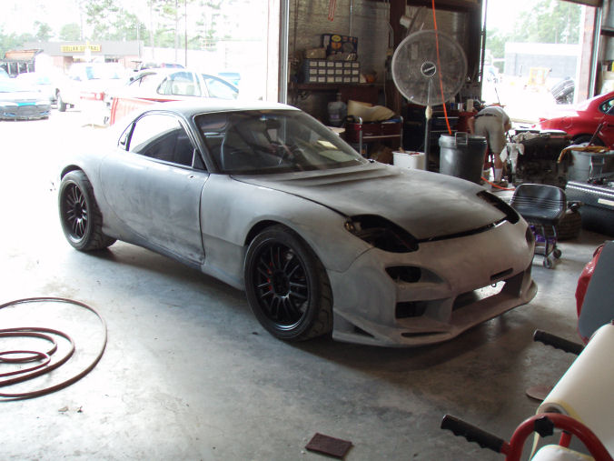 Ok, we have the kit primed, the car sanded and we're wetsanding and spraying today.... more work than I initially thought. Hopefully we'll be putting things back together tomorrow and cleaning it up for NOPI this weekend.