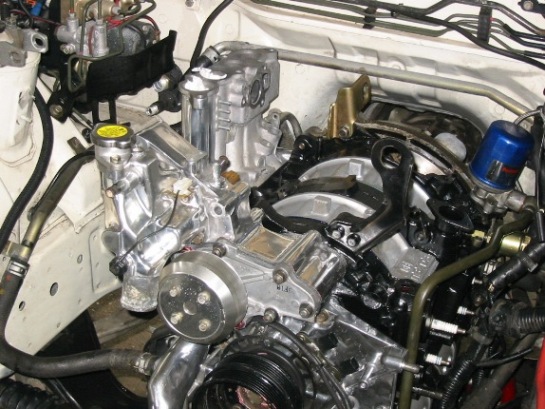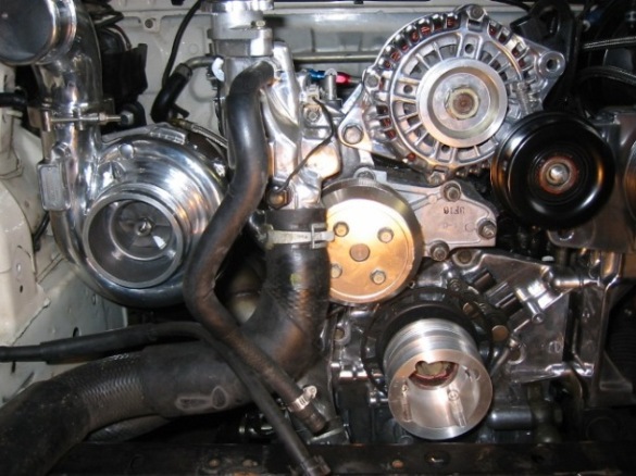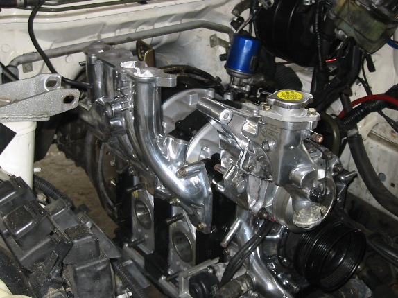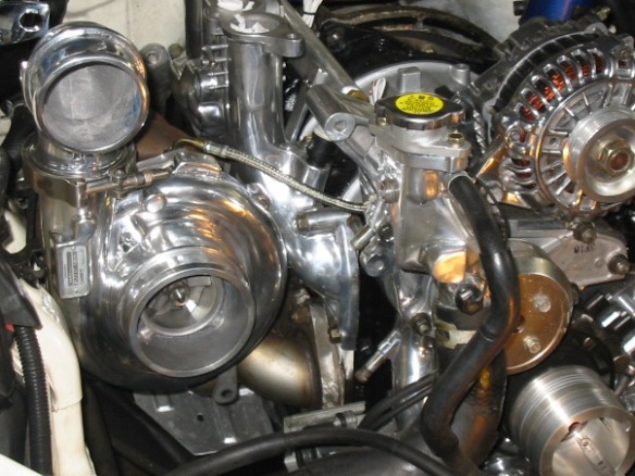 1) polished (or chromed) everything you can polish short of the rotor housings. UIM, LIM, TB, IC pipes, M2 large IC, power steering bracket, Front cover, fuel rail, power steering pulley (chromed), tension pulley (chromed), AST, turbo compressor housing, strut bar, aluminum ast, tial BOV (already polished) and alternator.