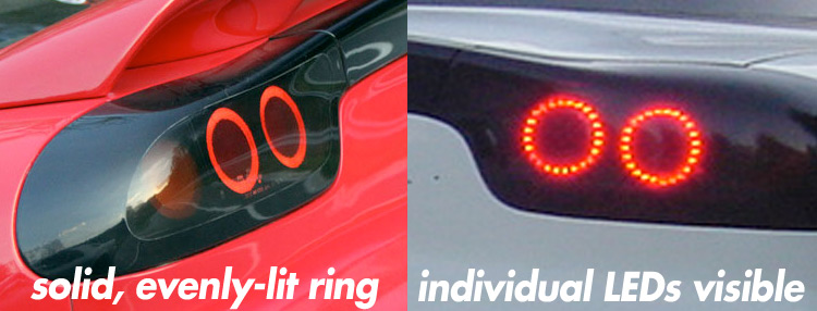 - Twin LED circles (80mm for the brake circles, 75mm for the turn signal circles)