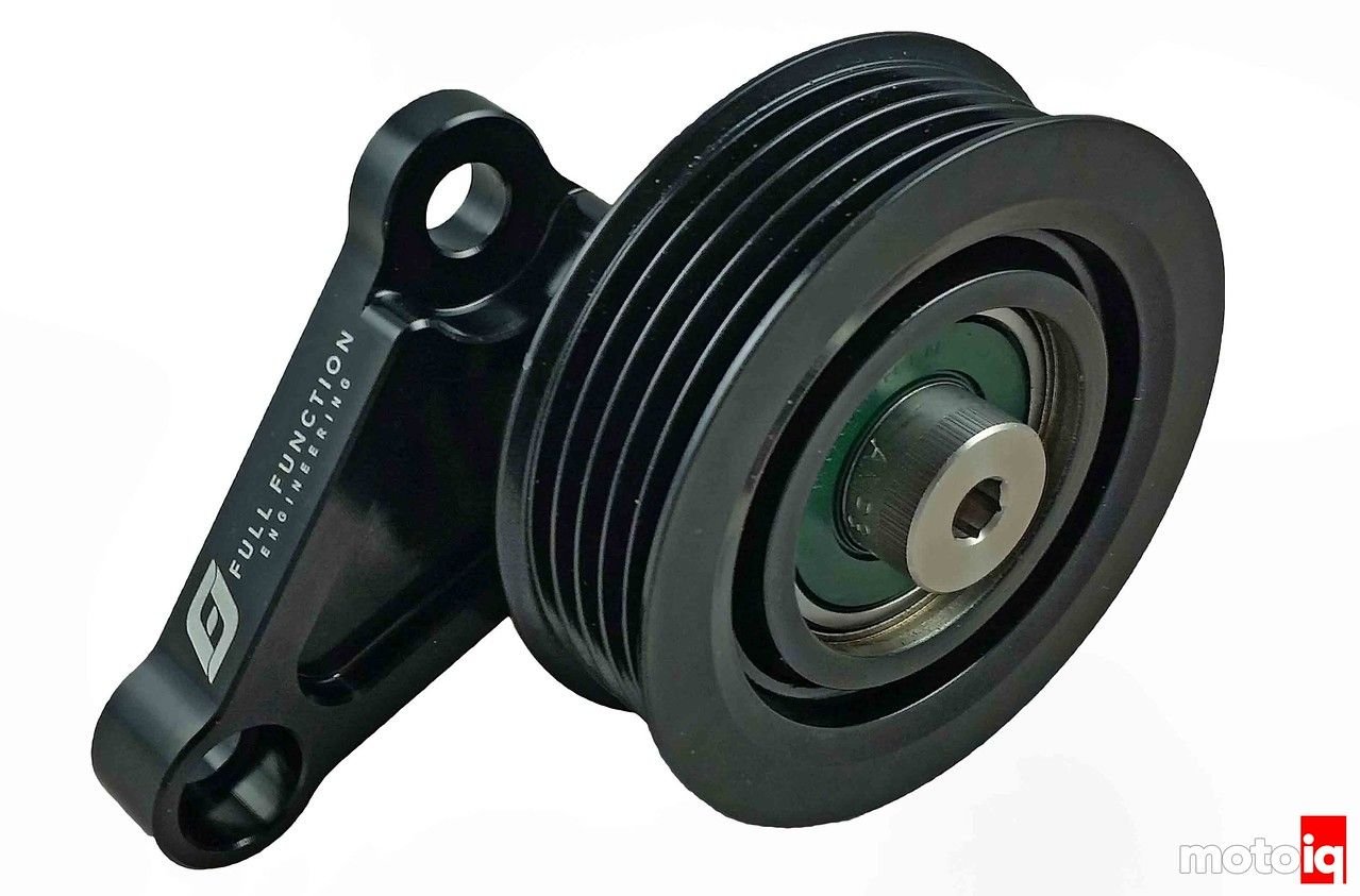 To make a simpler and more reliable off-road (track-only) engine setup, we removed the factory Air Pump and Air Control Valve, then installed the Full Function Engineering’s Idler Pulley Kit -which is a MUST, as well as FFE's block-off plates.