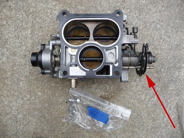 The cable will go underneath the intake elbow to the throttle-body. It will attach to a small pulley on the throttle-body that's nearly identical to a pulley used by the accelerator cable, except that it will attach from the opposite direction.