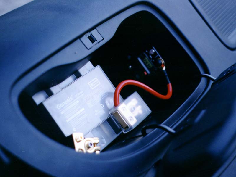 I know this is probably somewhat trivial, but why use the driver-side compartment (this applies to Jim's photo also)? I haven't corner-weighted my car yet, but I would imagine that the ideal solution would be to add weight to the passenger side of the car. I can see that you're saving about 2-3 feet of wiring, is that the main reason?